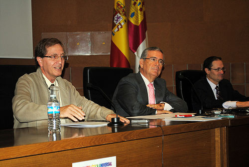 Tras dar el vicerrector la bienvenida al acto, tomó la palabra el director de la jornada para introducir el tema de la misma, señalando que si le hubieran preguntado hace un par de años la posibilidad de ir hacia una ética universal hubiera dicho que no, mientras que “ahora hay posibilidades y buenas”,-afirmó, argumentando dos razones: “La primera, porque si no nos esforzamos en reforzar las bases morales de la cultura, la ciencia y la organización social, se nos cae el edificio encima, y la crisis económica es una prueba, y la segunda porque se si hace bien, estos fantasmas no tienen por qué aparecer”,-señaló.